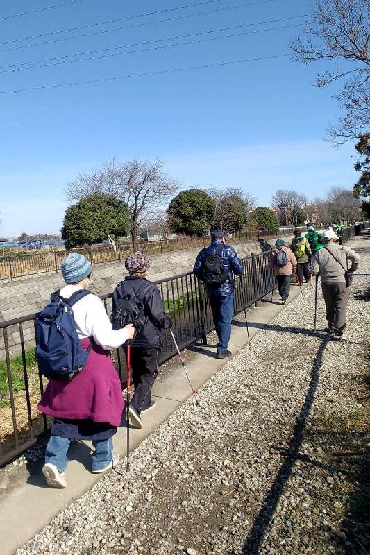 令和6年2月24日土曜日、9時からおよそ90分間、入曽地域交流センターを基点にたっちノルディックウォーキングを開催。昨日の雪と寒さが嘘のように晴れわたり、あたたかな絶好のウォーキング日和に。23名の参加者は、交流センターの裏で準備運動をして、5000歩コースと3000歩コースに分かれて楽しく歩きました。歩きながら談笑し、両脇の草花を楽しみました。大きなツバキは見事でした。